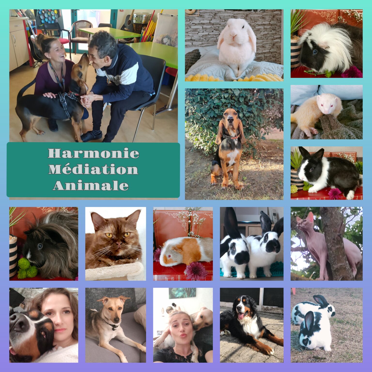 J’ai toujours eu une grande passion pour les animaux qui ont été constamment présents dans ma vie et d’un grand réconfort constant pour moi. J’ai pu constater l’impact positif qu’ils ont eu sur mon entourage et surtout sur mes enfants dans leurs grandes difficultés du quotidien. J’ai toujours souhaité travailler auprès d’eux, sans jamais vraiment oser passer le cap, jusqu’au jour ou j’ai découvert ce métier, LA MEDIATION ANIMALE. J’ai finalement trouvé ce que je cherchais depuis toujours en conciliant la passion des animaux, et la satisfaction que je ressens à aider et prendre soin de mon prochain. Je me suis donc lancée avec une grande détermination, motivation et conviction dans cette aventure.